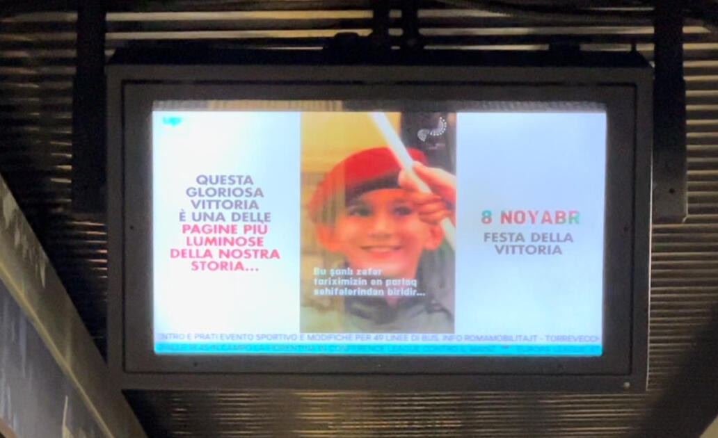 Va ricordato che il video sarà trasmesso fino al 9 novembre su 362 schermi di 55 stazioni della metropolitana di Roma e su 500 monitor in 120 fermate di autobus nell’ambito di una campagna di sensibilizzazione pubblica organizzata dall’Associazione Azerbaigiano-Italiana.