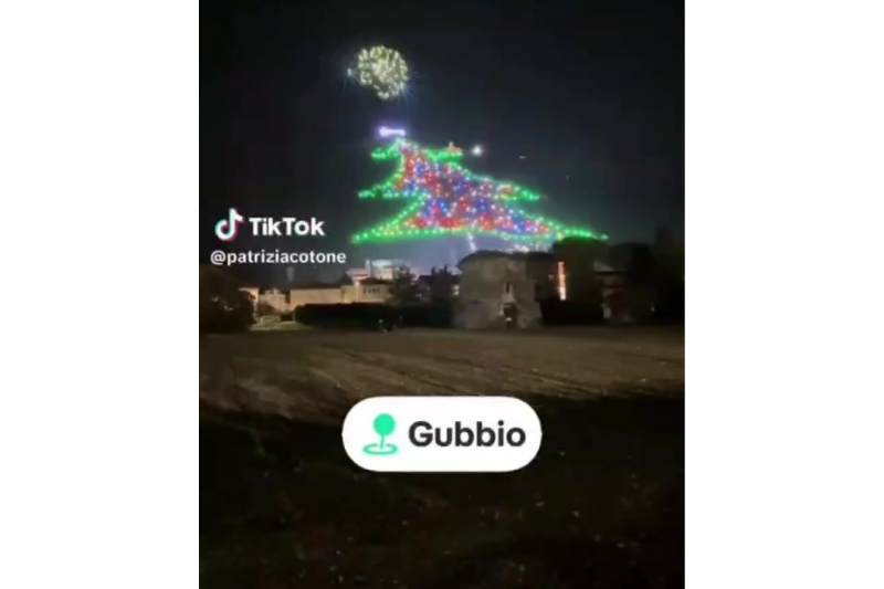 Nella città di Gubbio, conosciuta in Italia come la “città dei matti”, si è svolta la tradizionale accensione della gigantesca illuminazione a forma di albero di Natale, allestita sul versante del Monte Ingino.